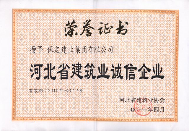 2010-2012河北省建筑業誠信企業