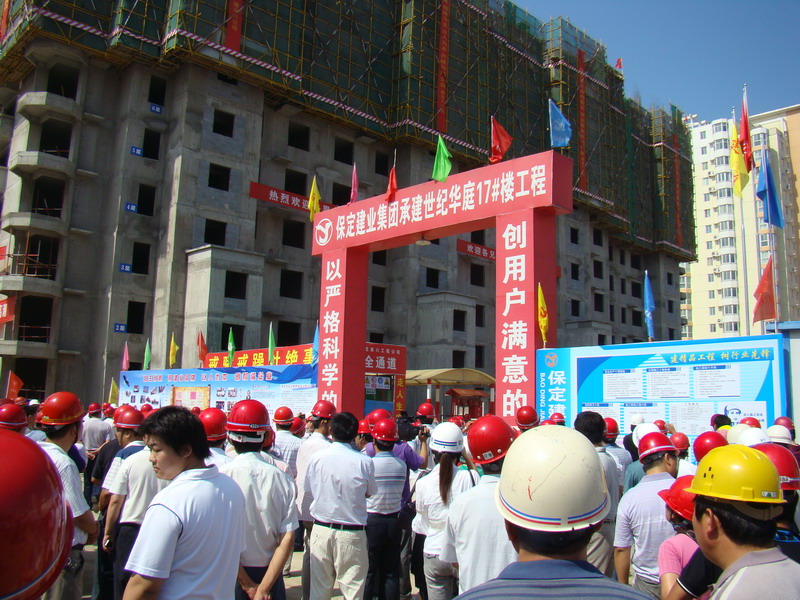 2010年7月20日,由市建設局安監站在華北電力大學會議室組織召開了建設系統安全文明施工現場會。會議有省、市安監站領導,市、縣、區建設局、安監站主要領導,全市及駐保主要建筑施工企業負責人參加。集團六公司世紀華庭17號樓項目部被選為與會人員參觀的樣板項目部。